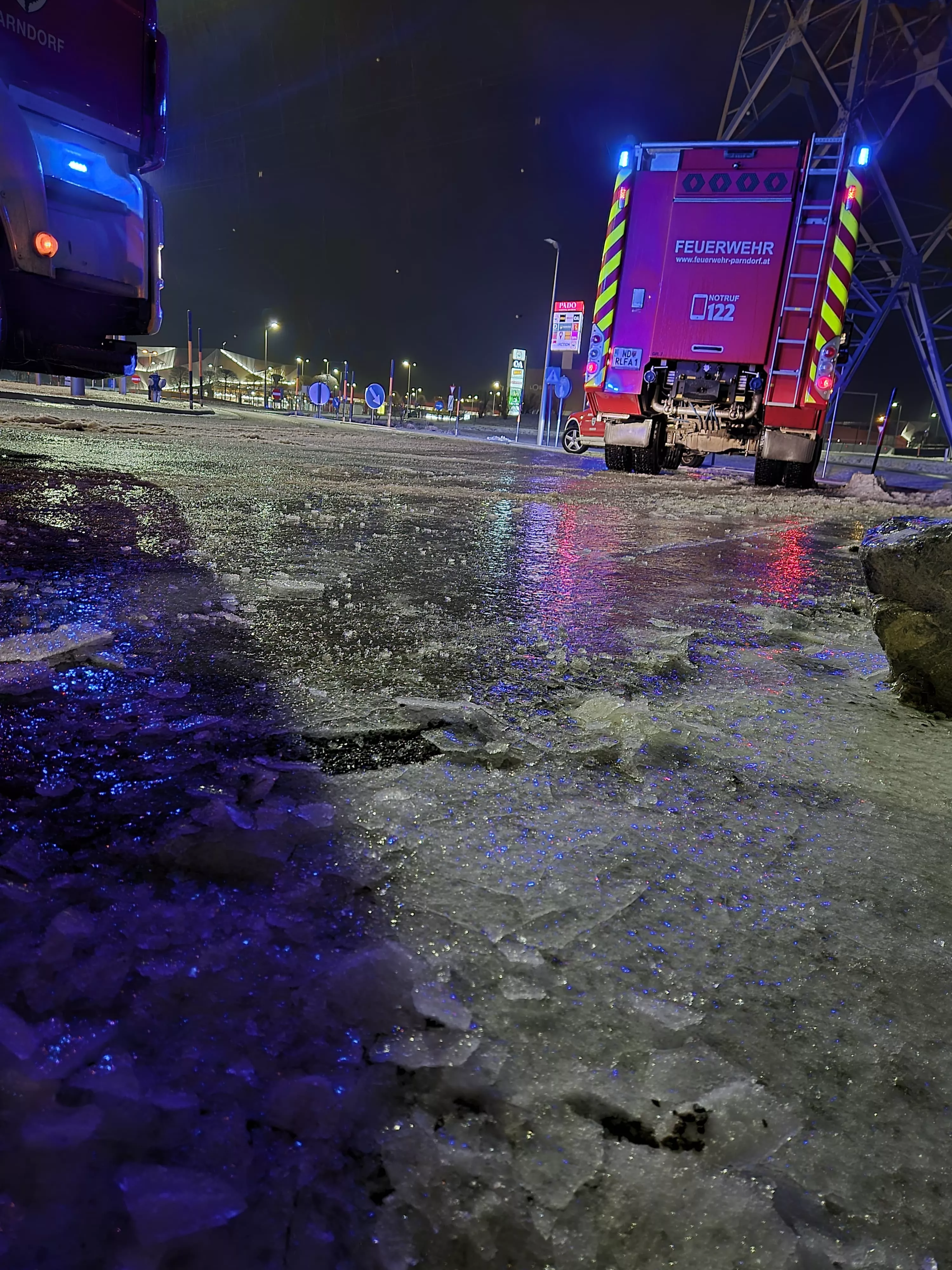 Aufgrund des Eisregens und der niedrigen Temperaturen kam es zu Blitzeis, was einem Fahrzeuglenker zum Verhängnis wurde: In einer Kurve kam er von der Fahrbahn ab und landete mit seinem PKW auf einem Begrenzungsstein. Wir hoben den PKW behutsam mittels Kran vom Stein, sodass der Fahrzeuglenker seine Weiterfahrt fortführen konnte.
