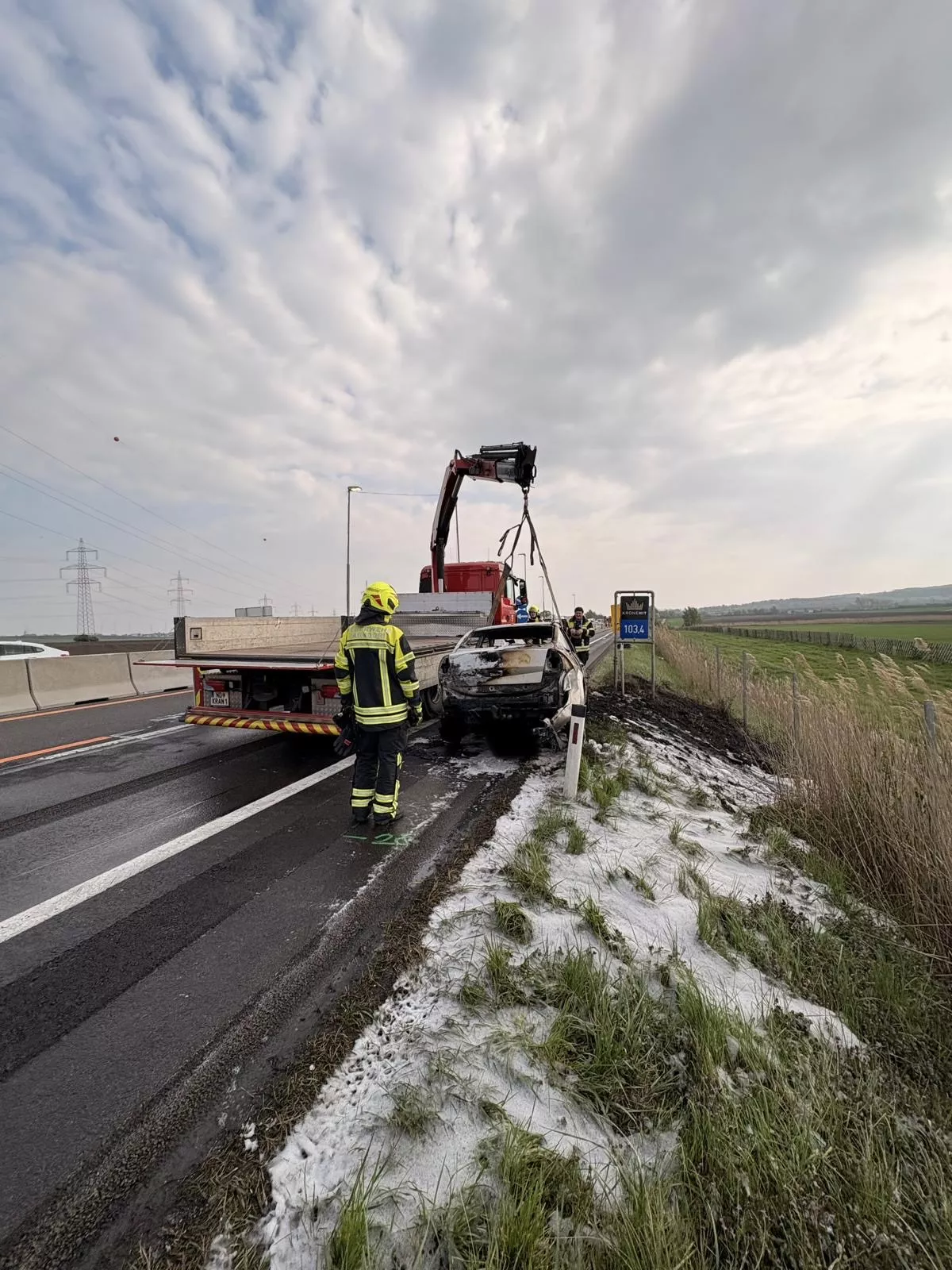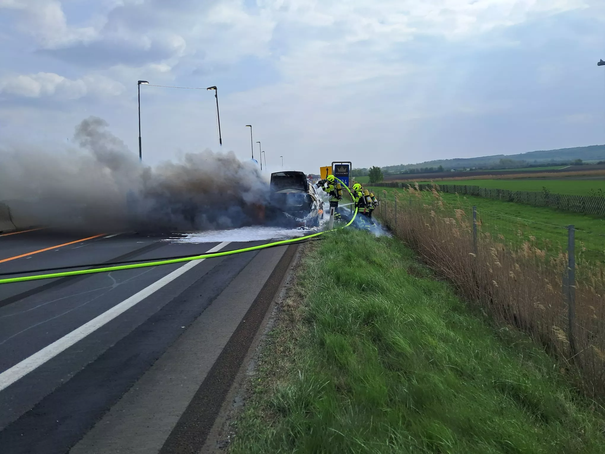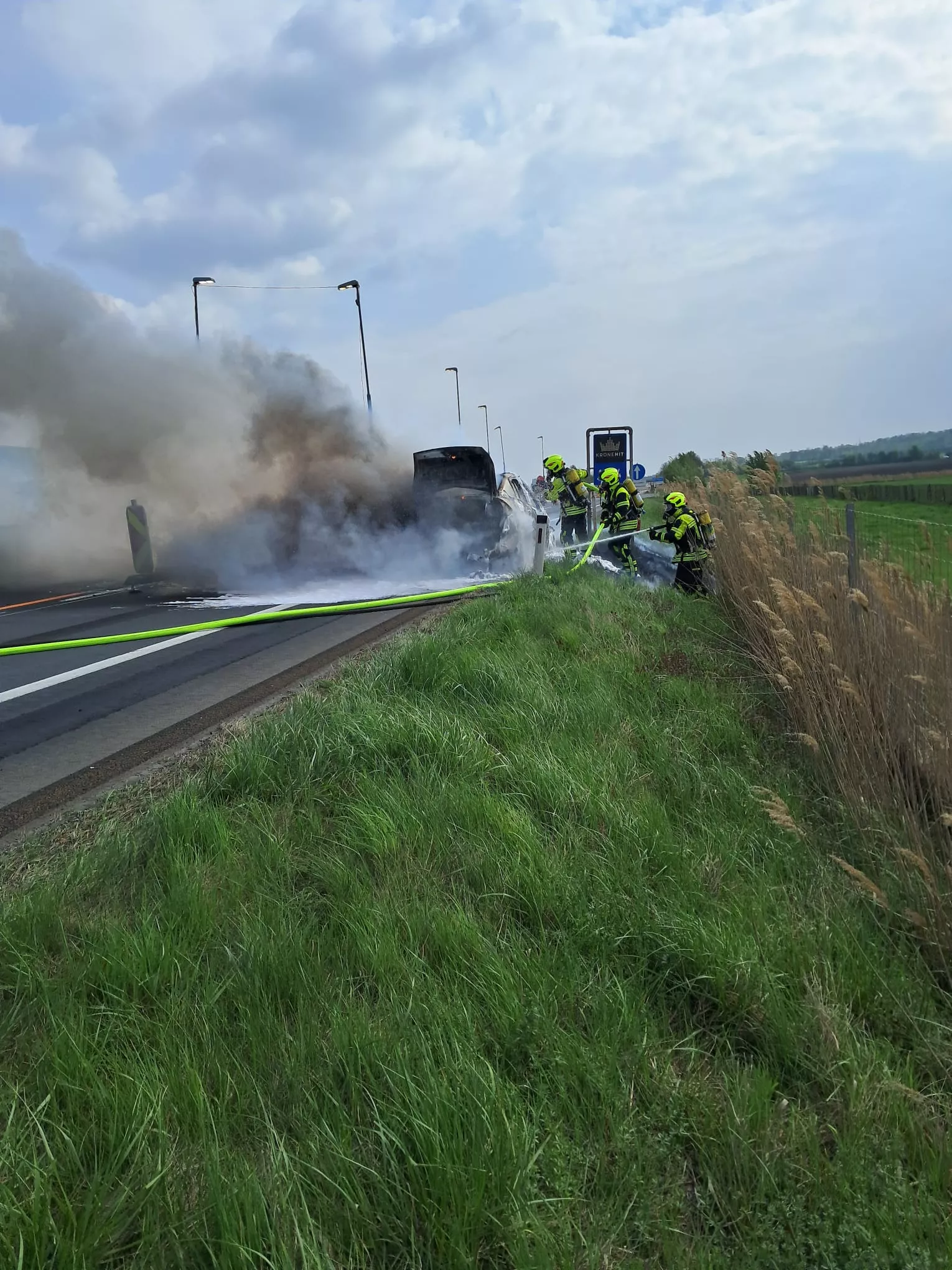 Heute galt es für uns um 14:57 Uhr einen Fahrzeugbrand auf der A4 Ostautobahn zu bekämpfen. Aufgrund der aktuellen Baustelle und der geänderten Spurführung musste die Brandbekämpfung unter einer Teilsperre von Polizei und Asfinag über die Betonschutzwand durchgeführt werden.
