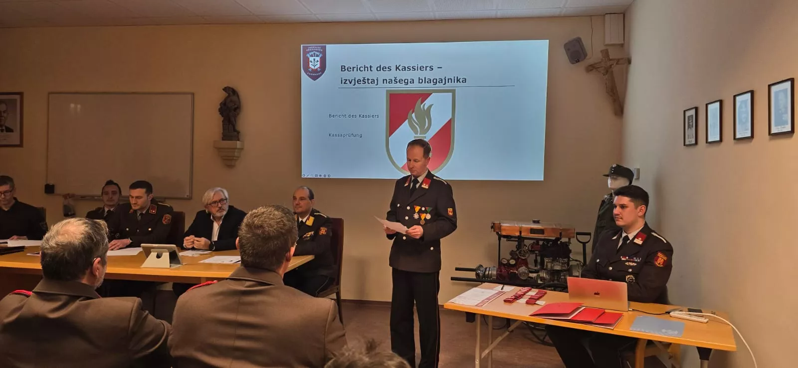 Danach folgten der Bericht des Kassiers sowie die Ansprache des Kommandanten. Nachdem die Ehrengäste ihre Worte kurz hielten wurde mit Beförderungen und Auszeichnungen fortgesetzt: Wir gratulieren folgenden Mitgliedern zu ihren Beförderungen: