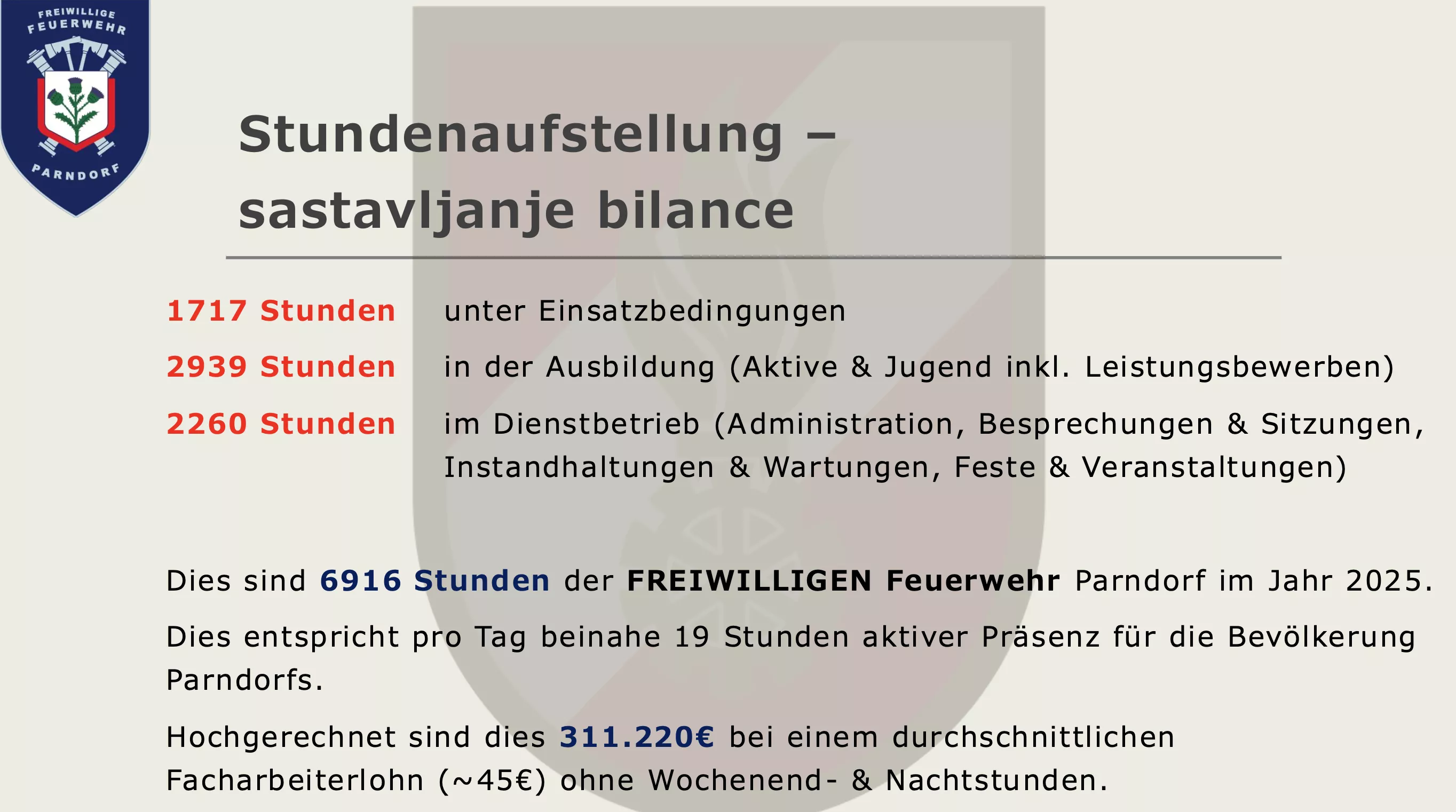 Am heutigen Freitag fand um 18:00 Uhr die jährliche Jahreshauptdienstbesprechung der Freiwilligen Feuerwehr Parndorf statt.